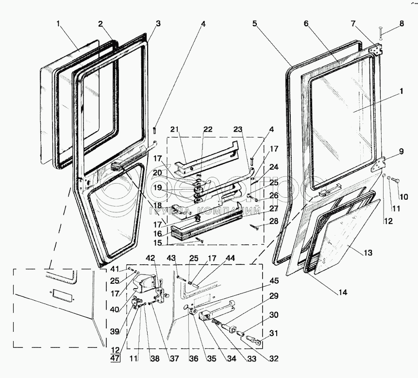 Каталог запасных частей к технике: МТЗ 1025.5. Двери кабины