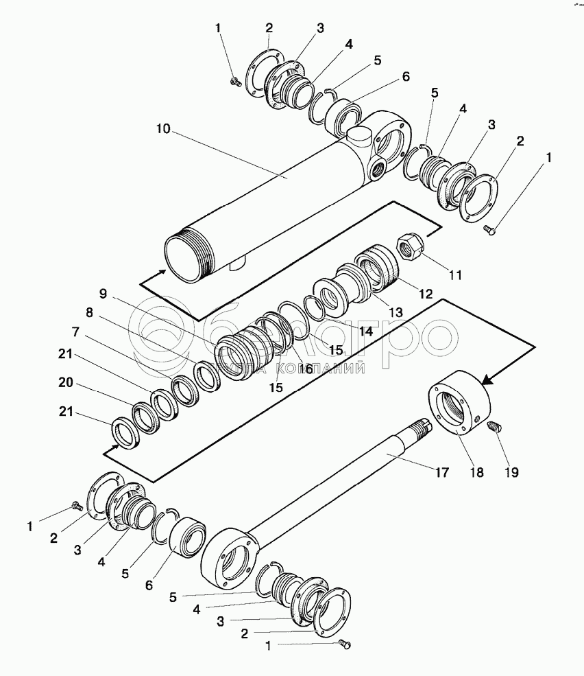 Каталог запасных частей к технике: МТЗ 1025.5. Гидроцилиндр Ц63 (63x30-200)