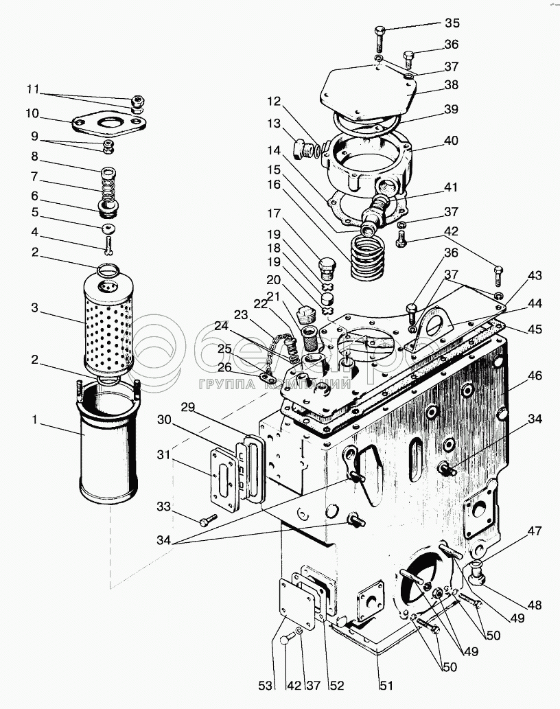 Каталог запасных частей к технике: МТЗ 1025.5. Корпус гидросистемы и фильтр