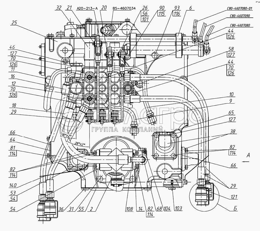 Каталог запасных частей к технике: МТЗ 1025.5. Корпус гидросистемы Р1221-4600015