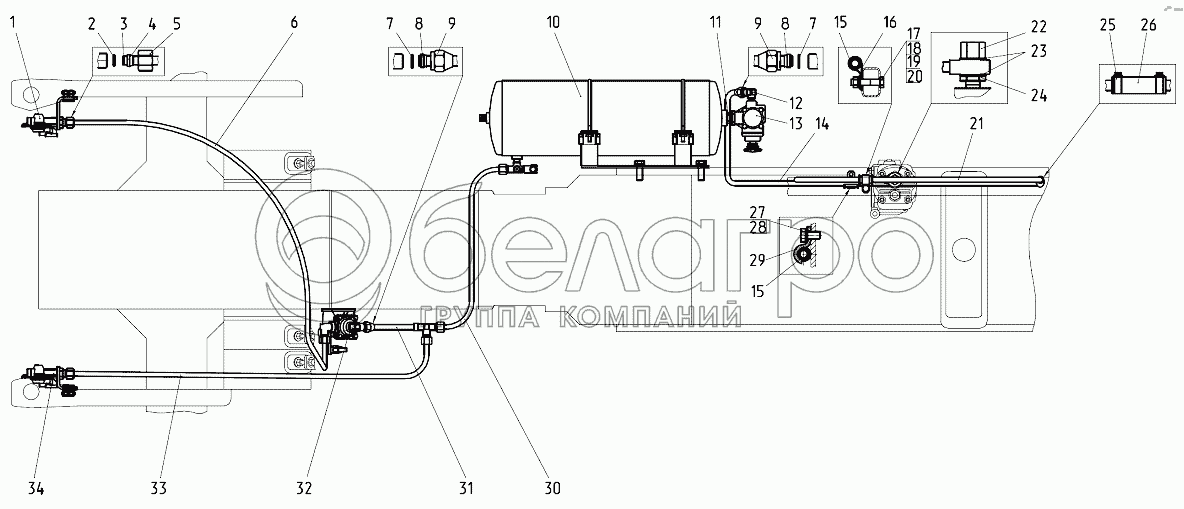 Каталог запасных частей к технике: МТЗ 1025.5. Пневмопривод (двухпроводный)