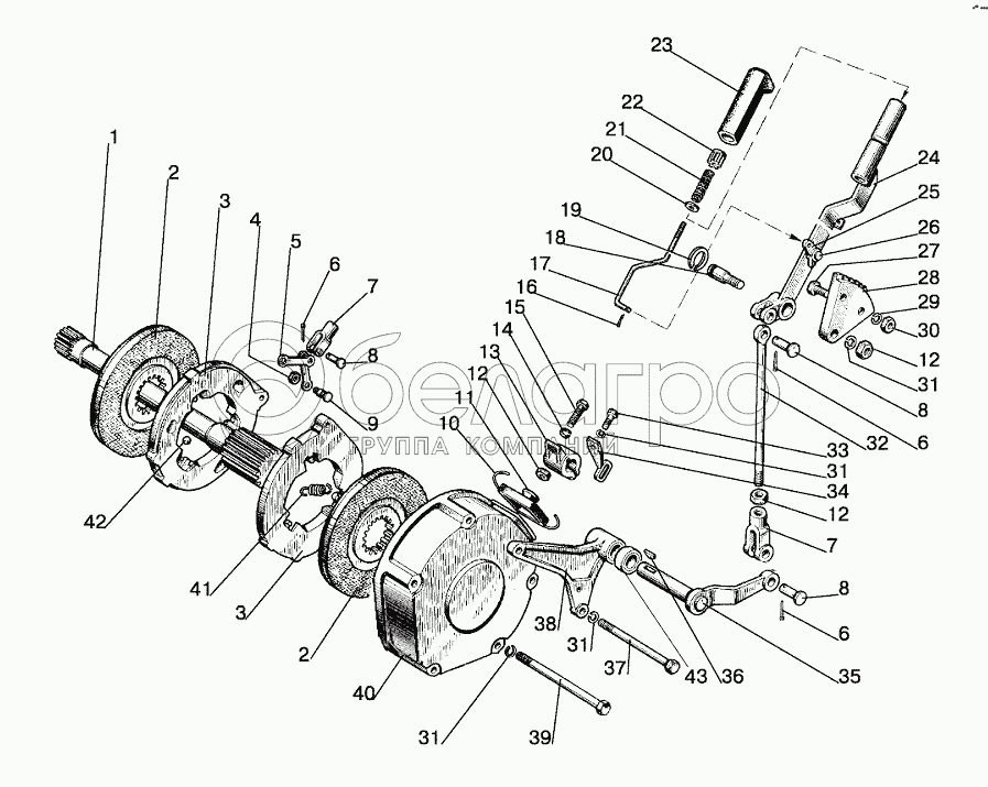 Каталог запасных частей к технике: МТЗ 1025.5. Тормоз стояночный. Управление стояночным тормозом