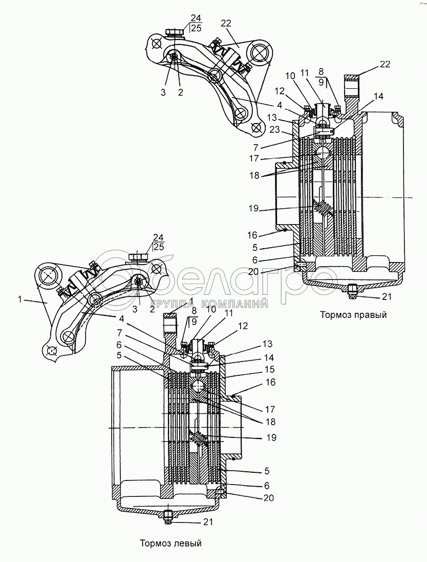 Каталог запасных частей к технике: МТЗ 1025.5. Тормоза «мокрые» (левый/правый)