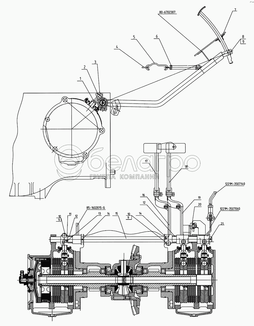Каталог запасных частей к технике: МТЗ 1025.5. Управление «мокрыми» тормозами