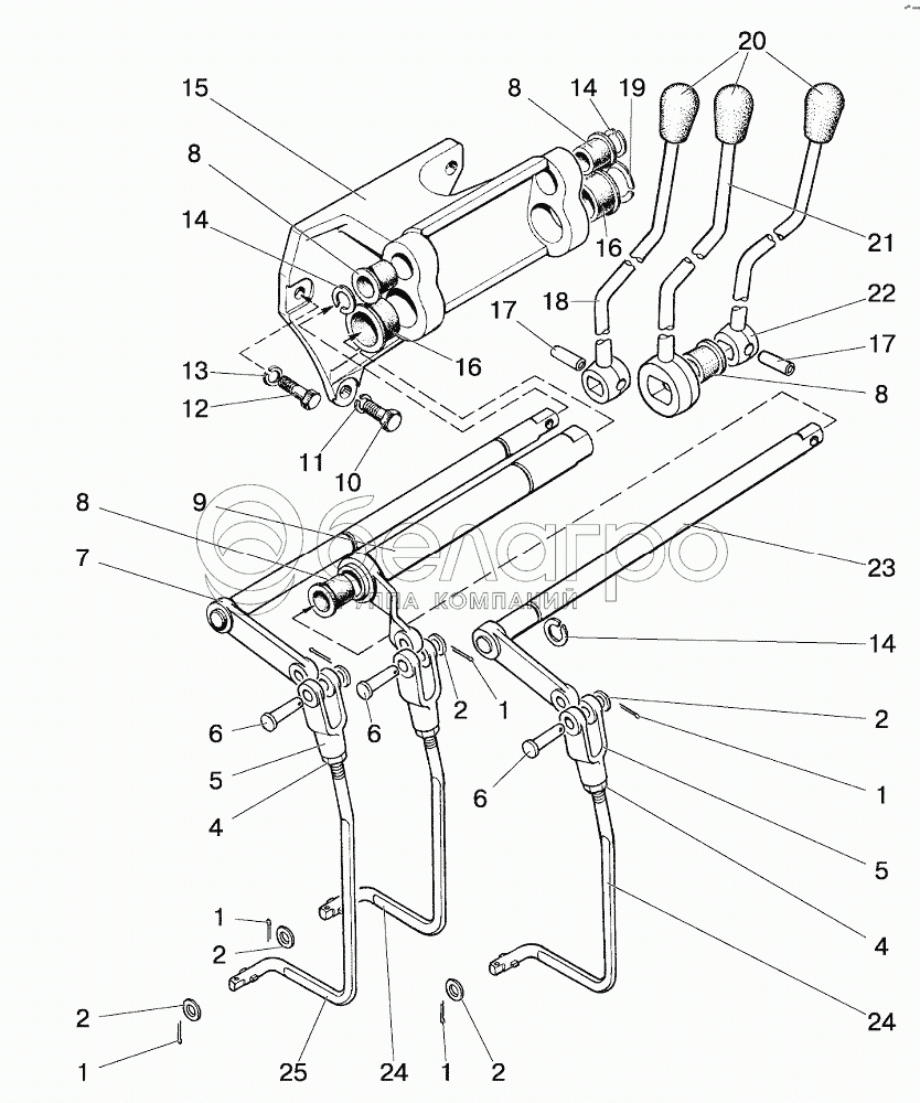 Каталог запасных частей к технике: МТЗ 1025.5. Управление гидрораспределителем РП 70