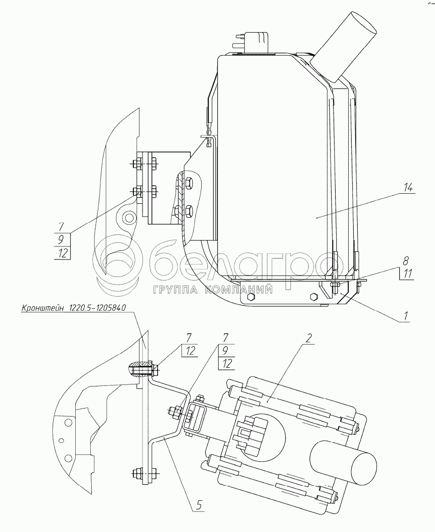Каталог запасных частей к технике: МТЗ 1025.5. Установка бака системы SCR (1220.5-1201010)