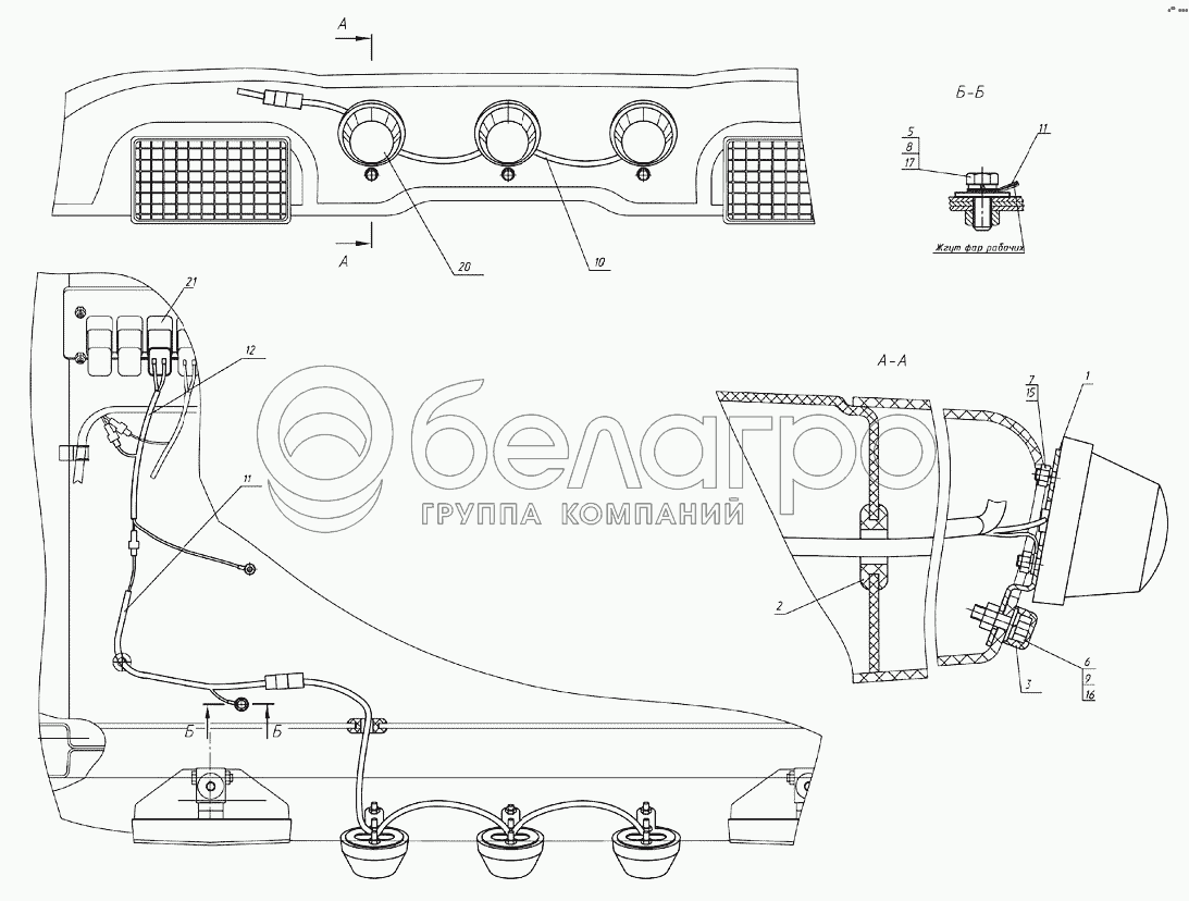 Каталог запасных частей к технике: МТЗ 1025.5. Установка фонарей автопоезда