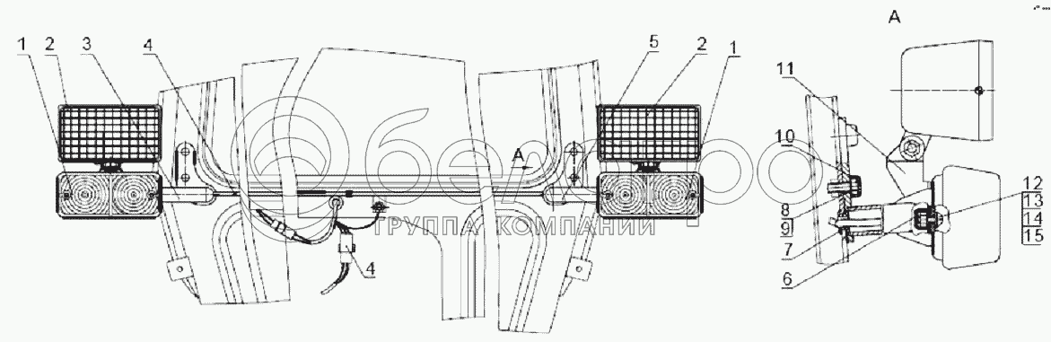 Каталог запасных частей к технике: МТЗ 1025.5. Установка фонарей передних с рабочими фарами