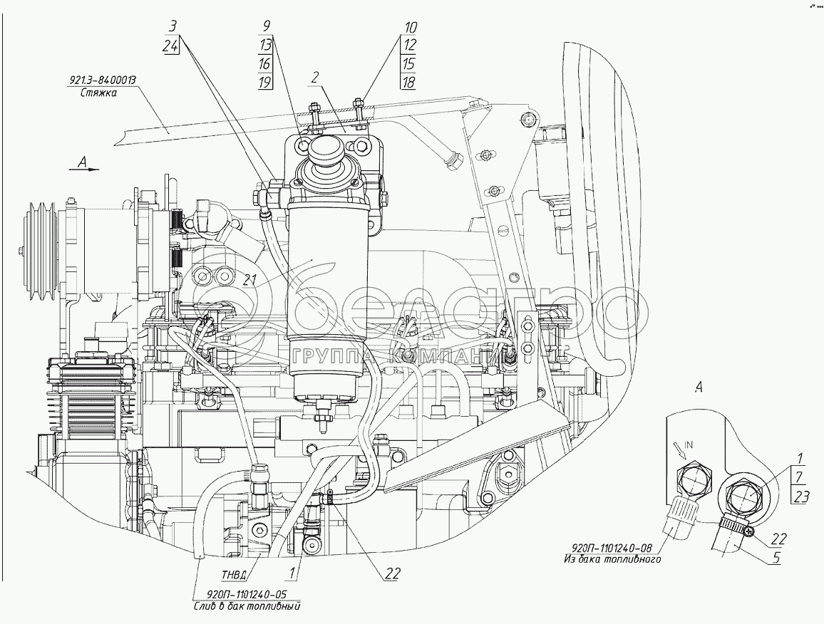 Каталог запасных частей к технике: МТЗ 1025.5. Установка топливного фильтра