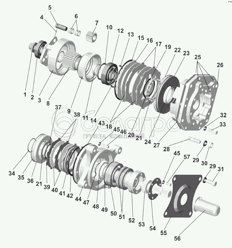 Каталог запасных частей к технике: МТЗ 1025.5. Вал отбора мощности задний