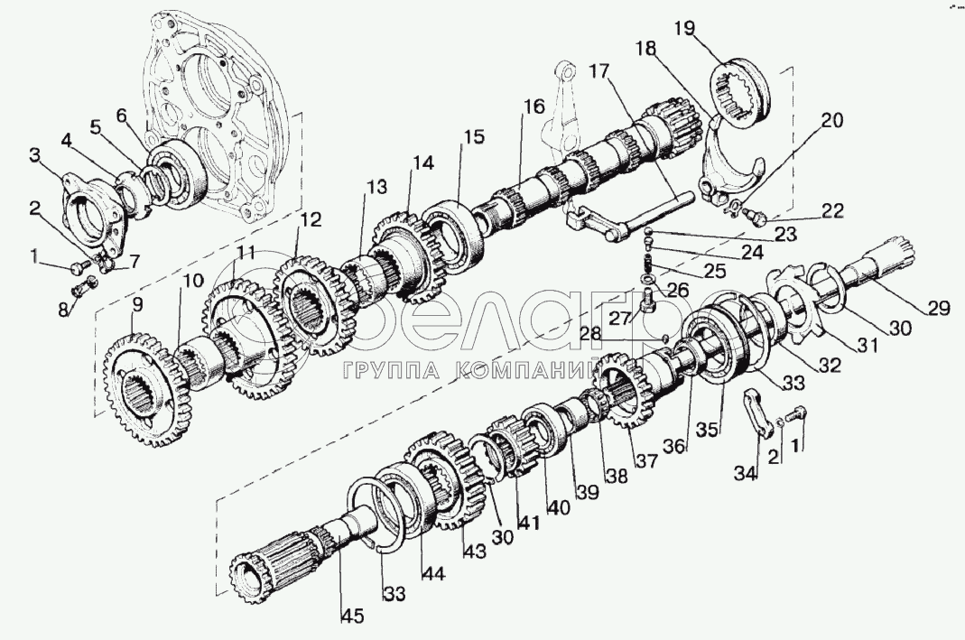 Каталог запасных частей к технике: МТЗ 1220. Коробка передач. Вал промежуточный (16F+8R)