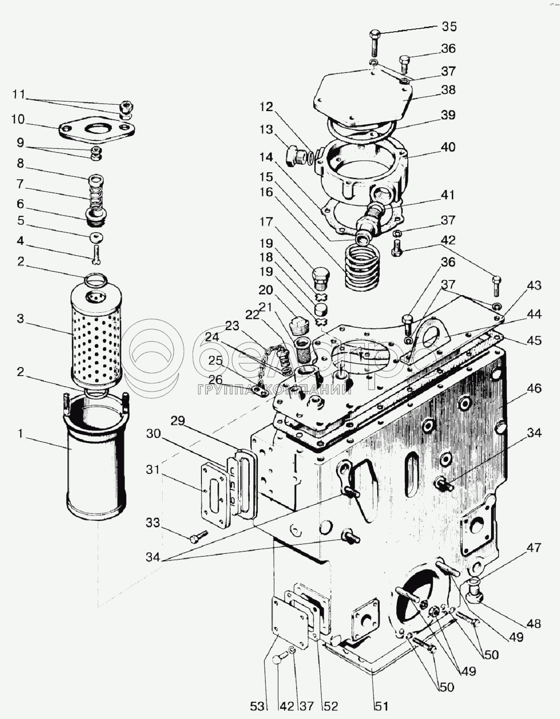 Каталог запасных частей к технике: МТЗ 1220. Корпус гидросистемы и фильтр
