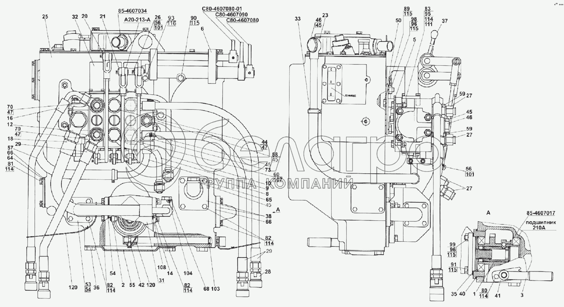 Каталог запасных частей к технике: МТЗ 1220. Корпус гидросистемы Р1221-4600015