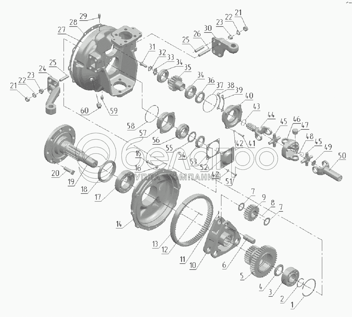 Каталог запасных частей к технике: МТЗ 1220. Редуктор конечной передачи переднего ведущего моста