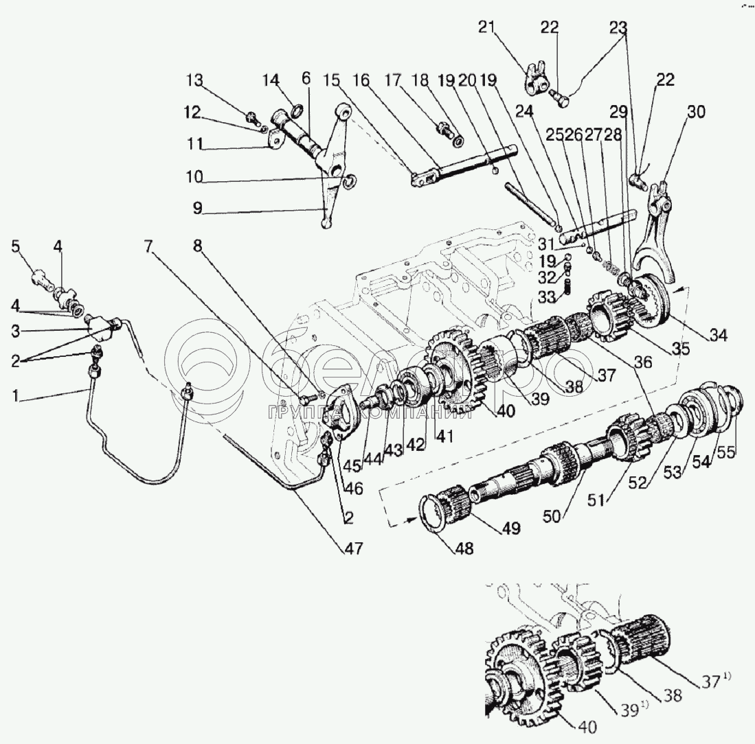Каталог запасных частей к технике: МТЗ 1220. Вал пониженных передач (16F+8R)