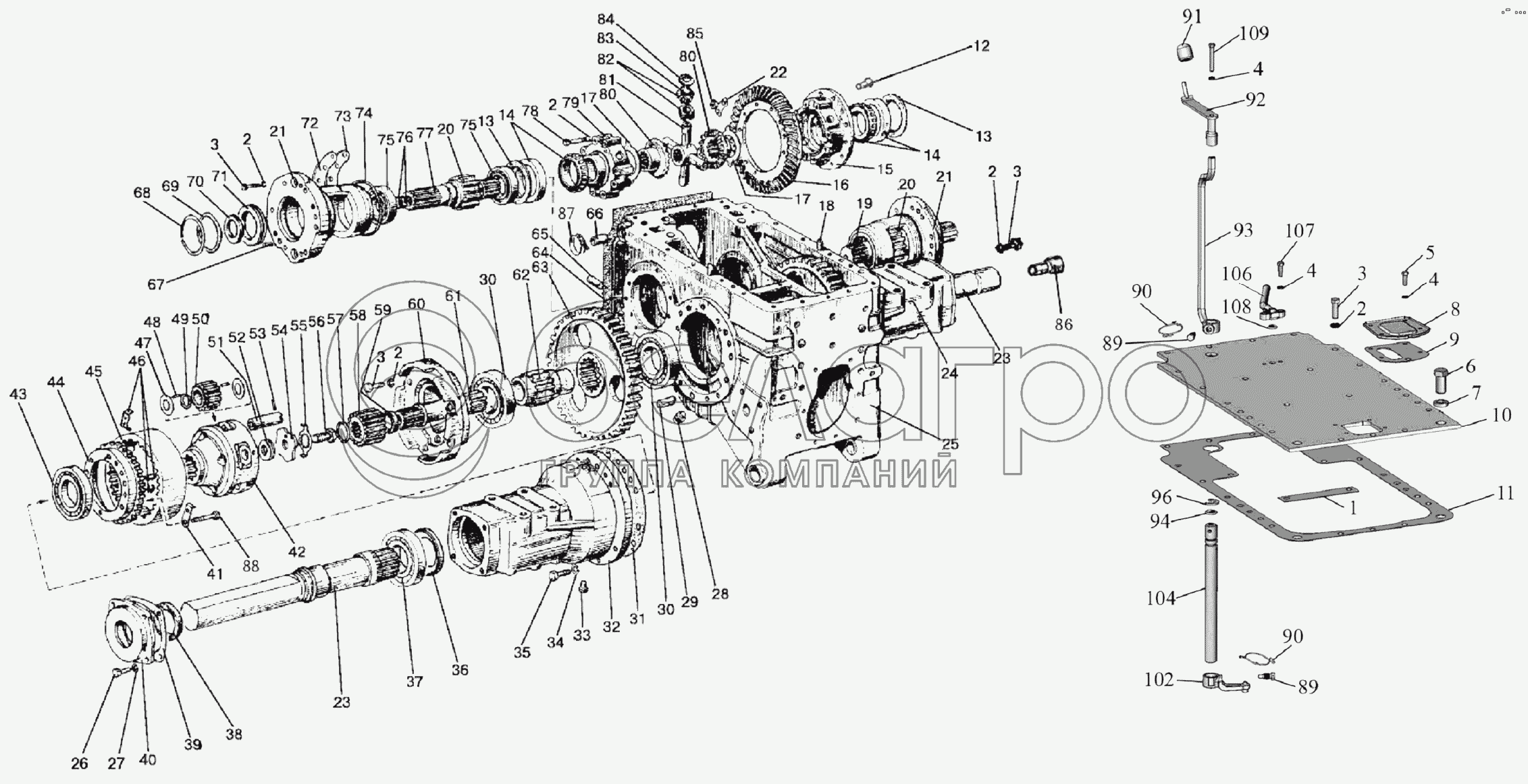 Каталог запасных частей к технике: МТЗ 1220. Задний мост. Дифференциал. Конечные передачи