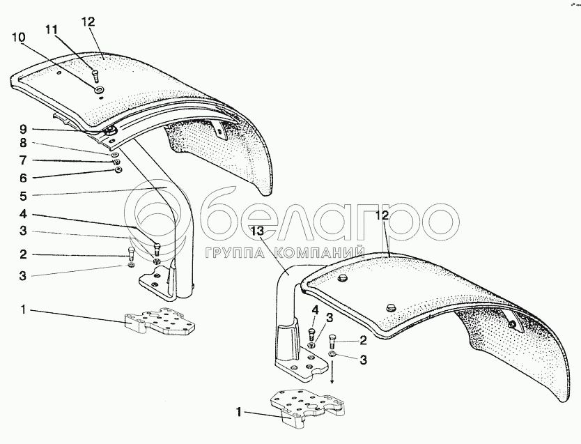 Каталог запасных частей к технике: МТЗ 1220.5. Крылья передние (для ПВМ с удлиненными рукавами)