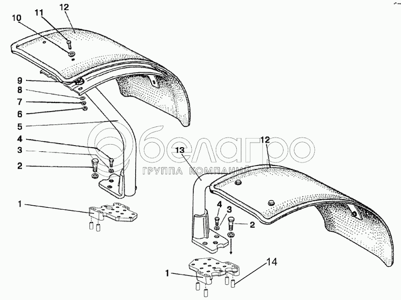 Каталог запасных частей к технике: МТЗ 1220.5. Крылья передних колес