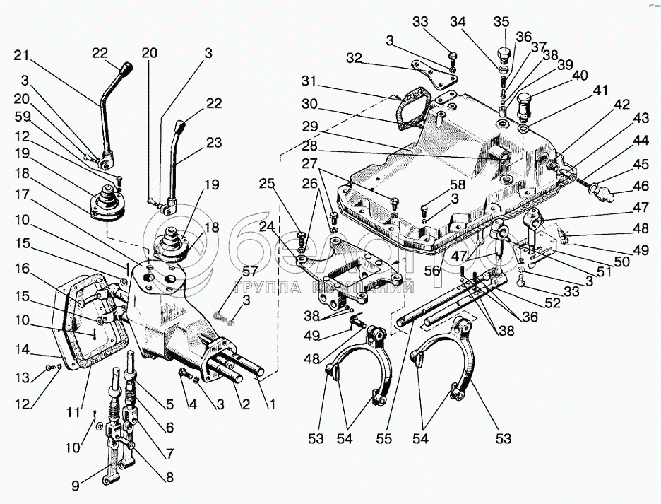 Каталог запасных частей к технике: МТЗ 1220.5. Механизм управления коробкой передач (16F+8R)