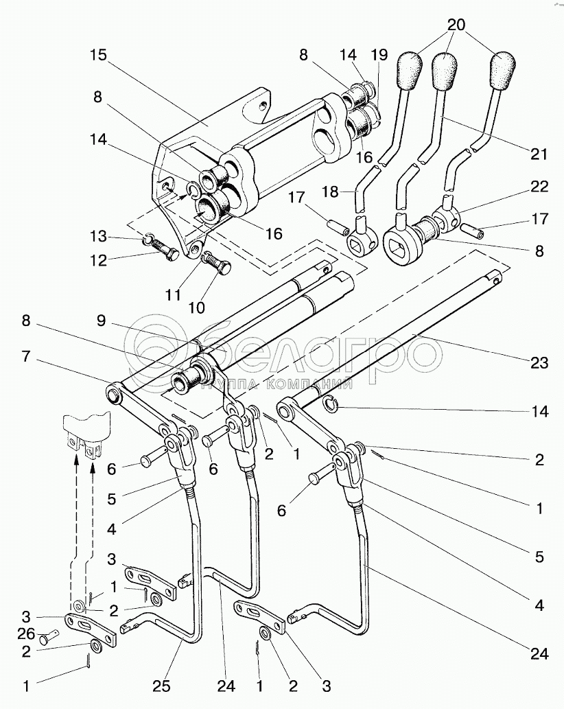 Каталог запасных частей к технике: МТЗ 1220.5. Управление гидрораспределителем (РП70, RS 213 Mita)