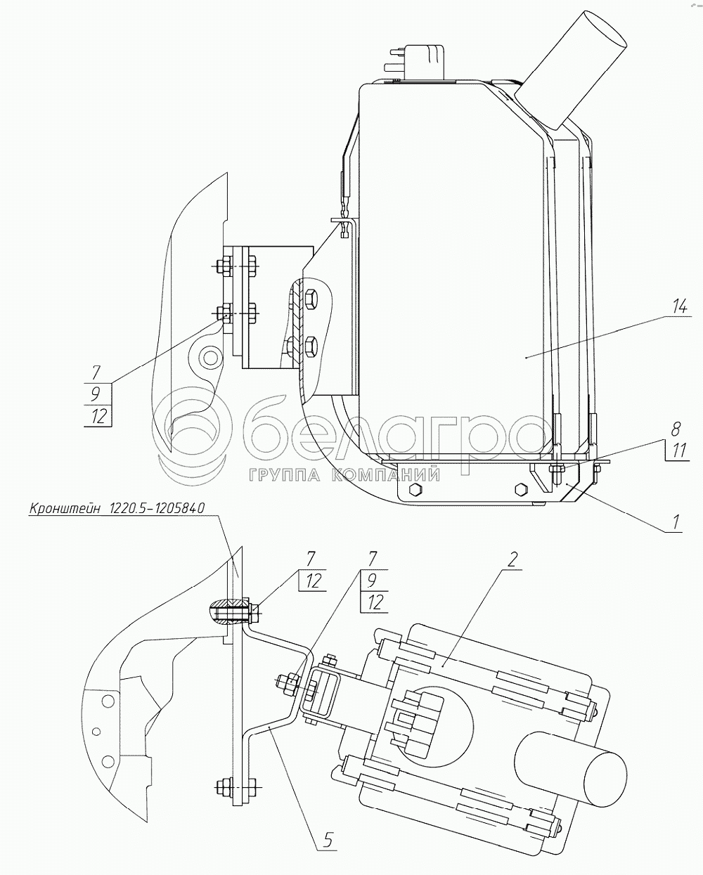 Каталог запасных частей к технике: МТЗ 1220.5. Установка бака системы SCR (1220.5-1201010)