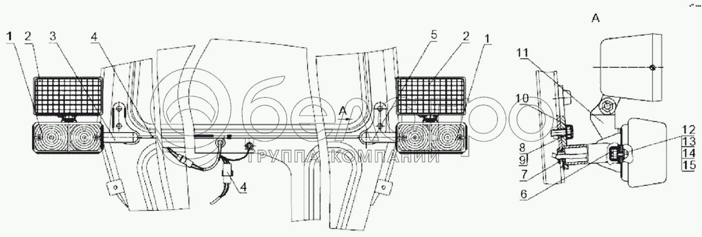 Каталог запасных частей к технике: МТЗ 1220.5. Установка фонарей передних