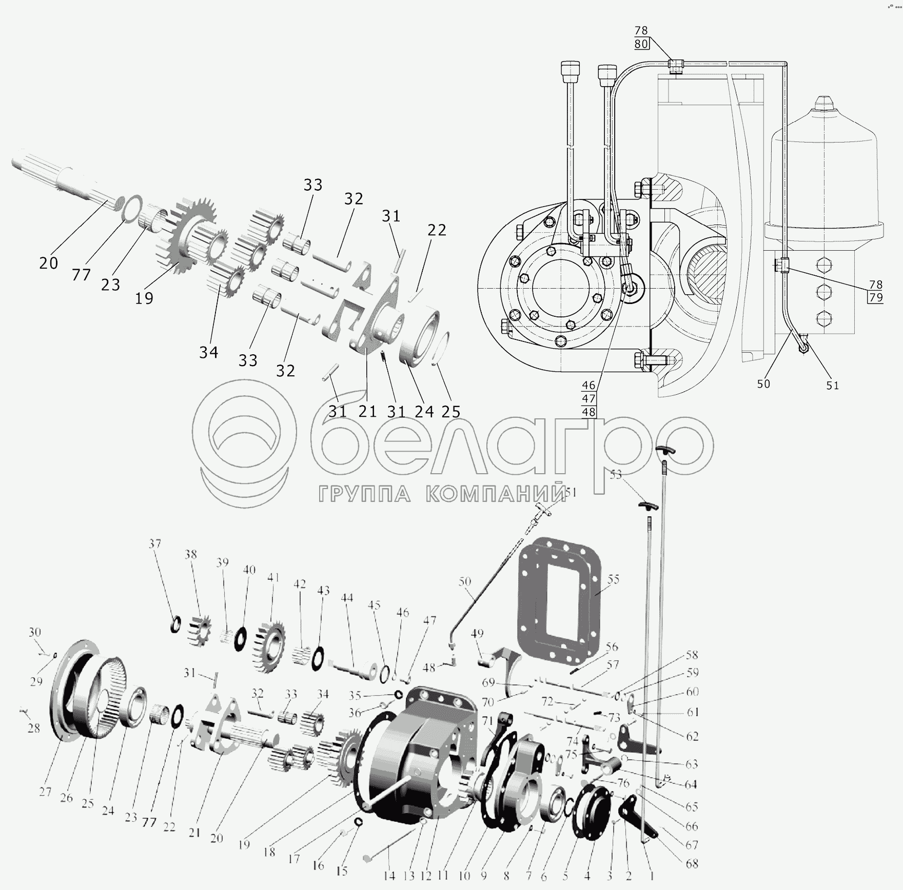 Каталог запасных частей к технике: МТЗ 1220.5. Установка ходоуменьшителя