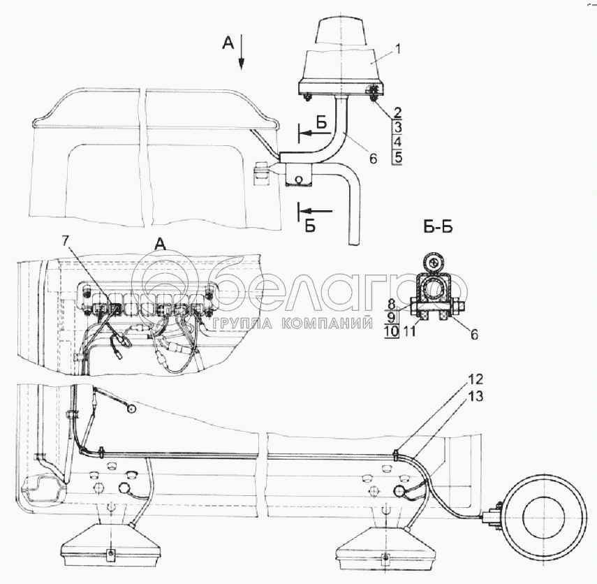 Каталог запасных частей к технике: МТЗ 1220.5. Установка маяка сигнального