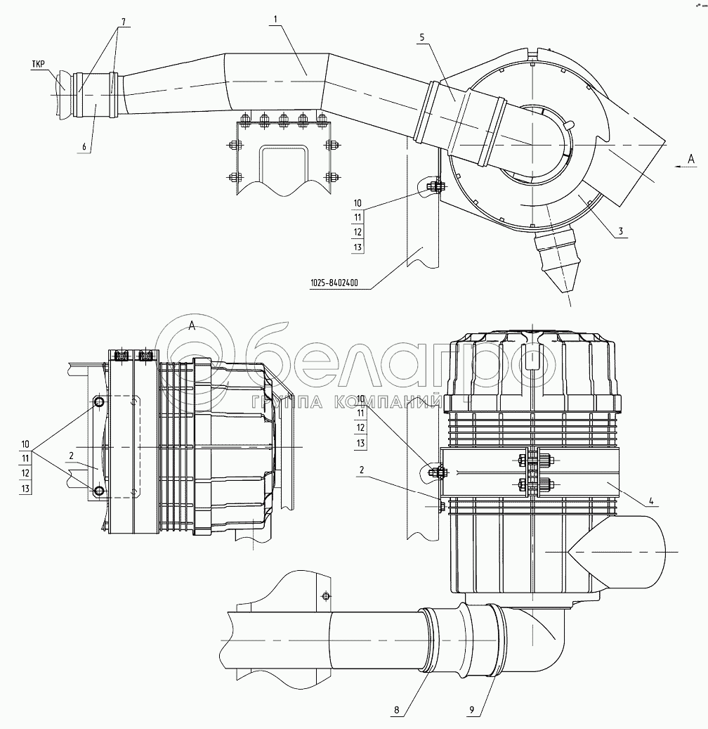Каталог запасных частей к технике: МТЗ 1220.5. Установка воздухоочистителя