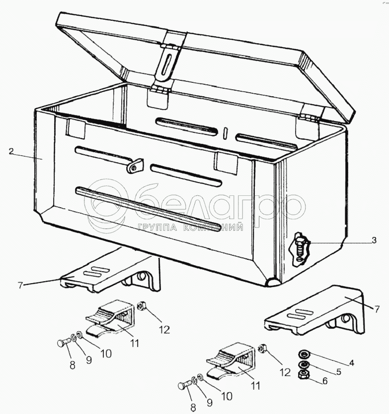 Каталог запасных частей к технике: МТЗ 1220.5. Установка ящика инструментального