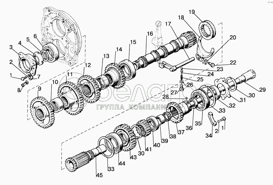 Каталог запасных частей к технике: МТЗ 1220.5. Вал промежуточный (16F+8R)