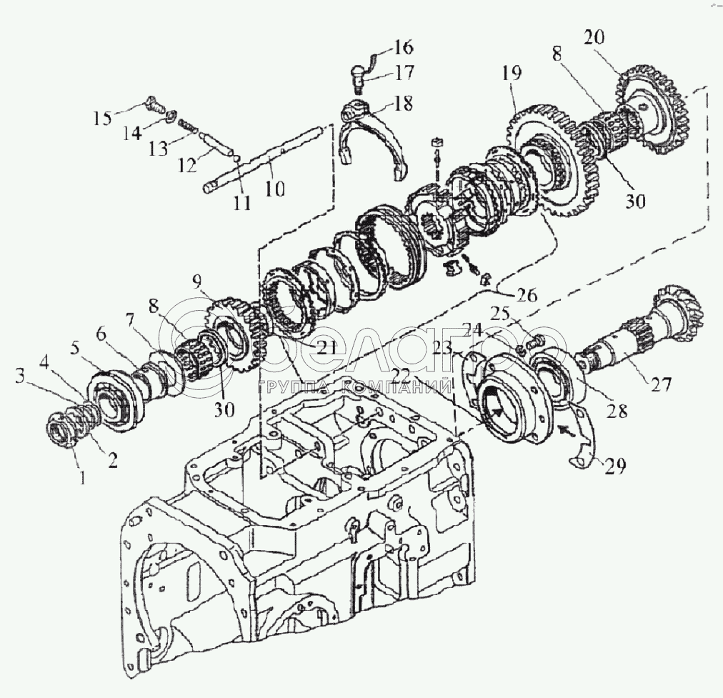 Каталог запасных частей к технике: МТЗ 1220.5. Вал вторичный (24F+12R)