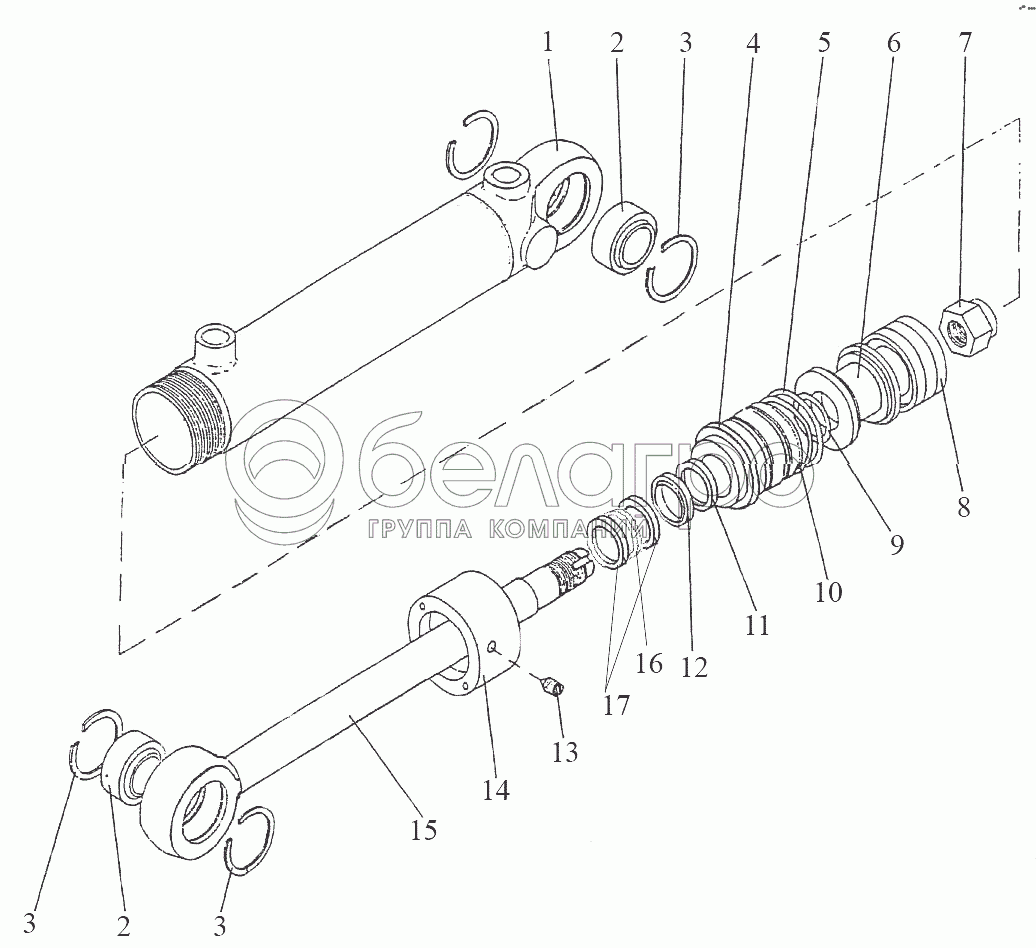 Каталог запасных частей к технике: МТЗ 1523.5. Гидроцилиндр 50x25-200