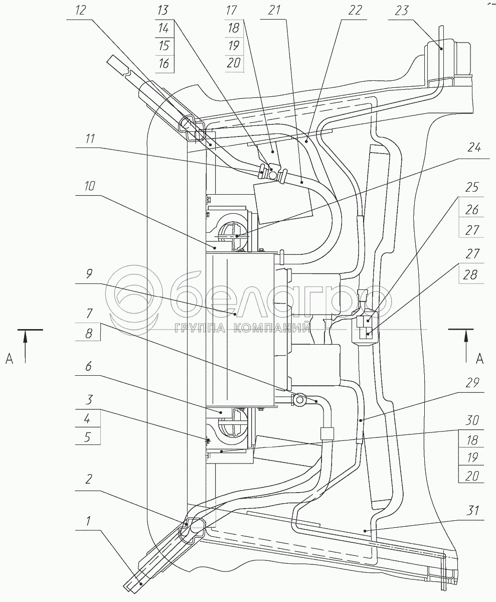 Каталог запасных частей к технике: МТЗ 1523.5. Установка отопителя-охладителя