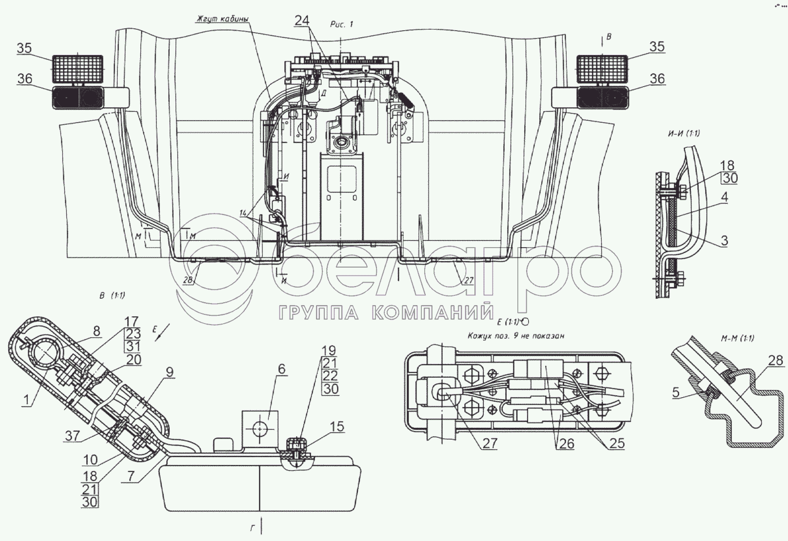 Каталог запасных частей к технике: МТЗ 1523.5. Установка фонарей передних