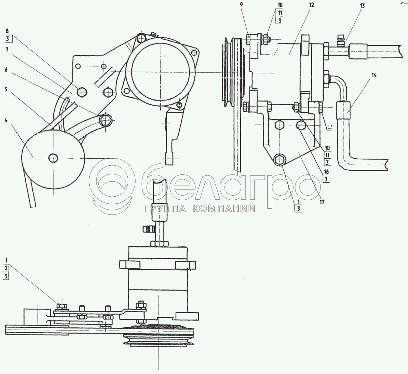 Каталог запасных частей к технике: МТЗ 1523.5. Установка компрессора