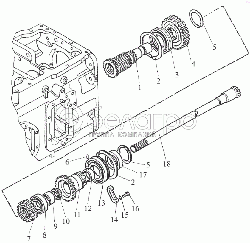 Каталог запасных частей к технике: МТЗ 1523.5. Вал блока шестерен