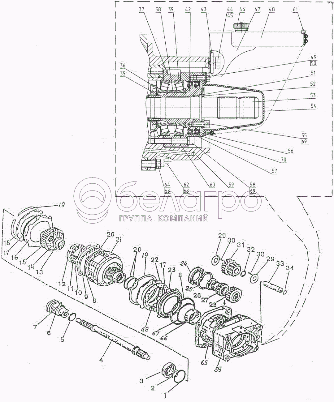 Каталог запасных частей к технике: МТЗ 1523.5. Вал отбора мощности