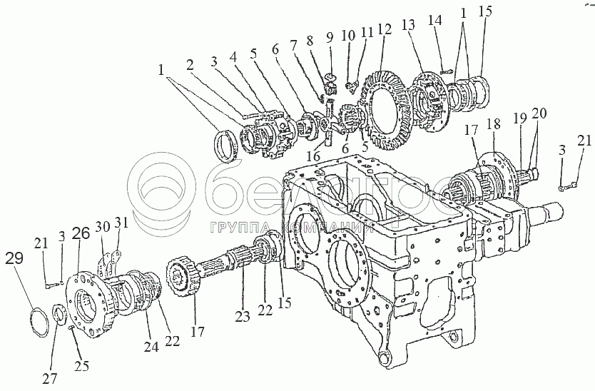 Каталог запасных частей к технике: МТЗ 1523.5 с ГМТ. Дифференциал. Стакан подшипников.