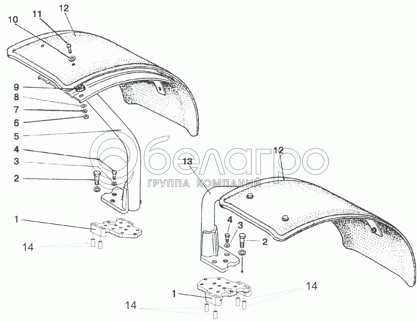 Каталог запасных частей к технике: МТЗ 1523.5 с ГМТ. Крылья передних колес