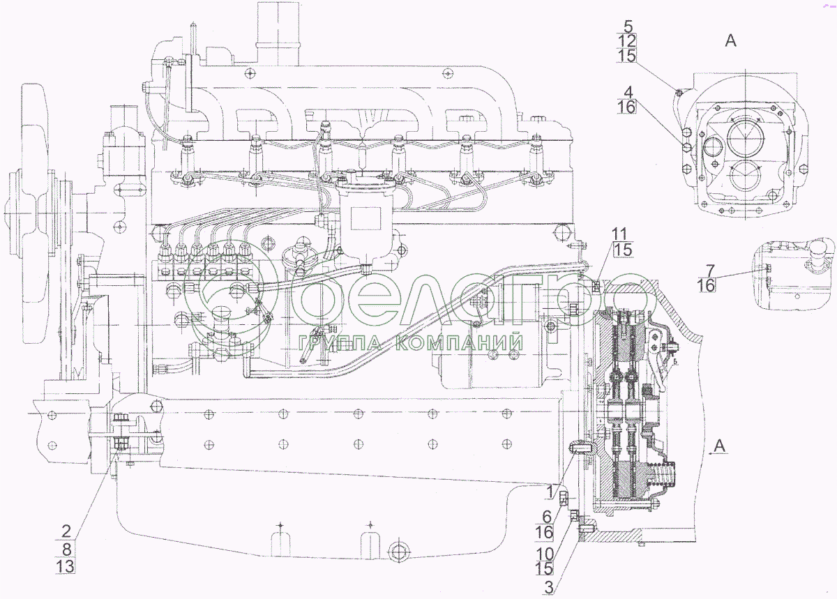 Каталог запасных частей к технике: МТЗ 1523.5 с ГМТ. Установка двигателя