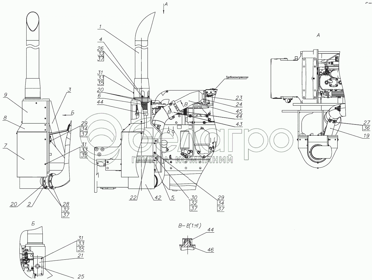 Каталог запасных частей к технике: МТЗ 1523.5 с ГМТ. Установка глушителя