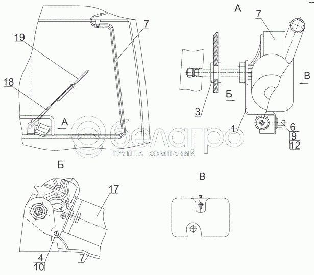 Каталог запасных частей к технике: МТЗ 1523.5 с ГМТ. Установка заднего стеклоочистителя