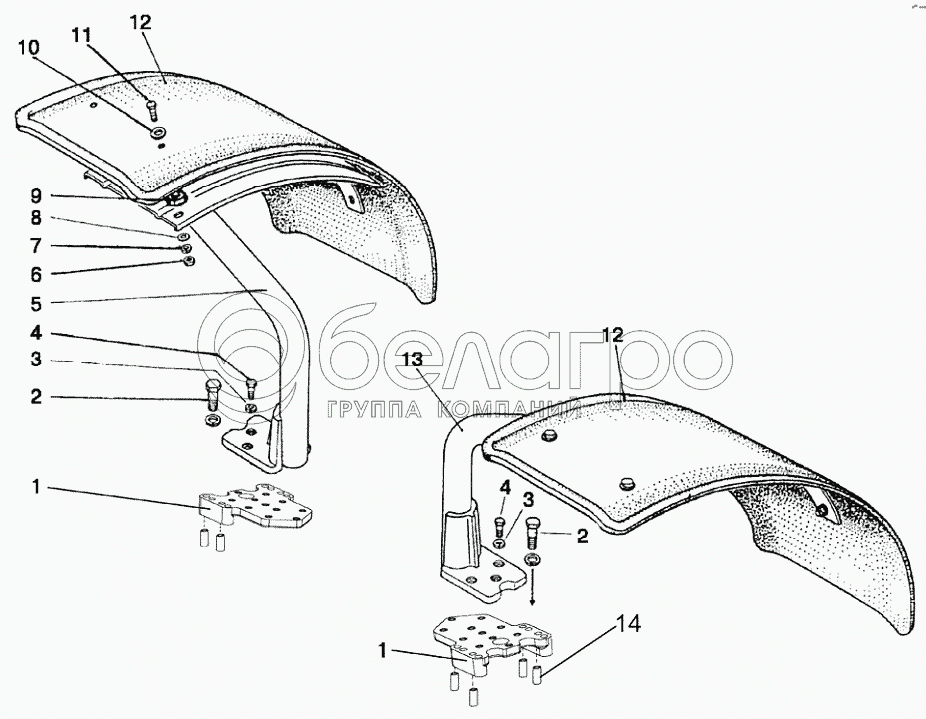 Каталог запасных частей к технике: МТЗ 2122.3/2122.4. Крылья передних колес