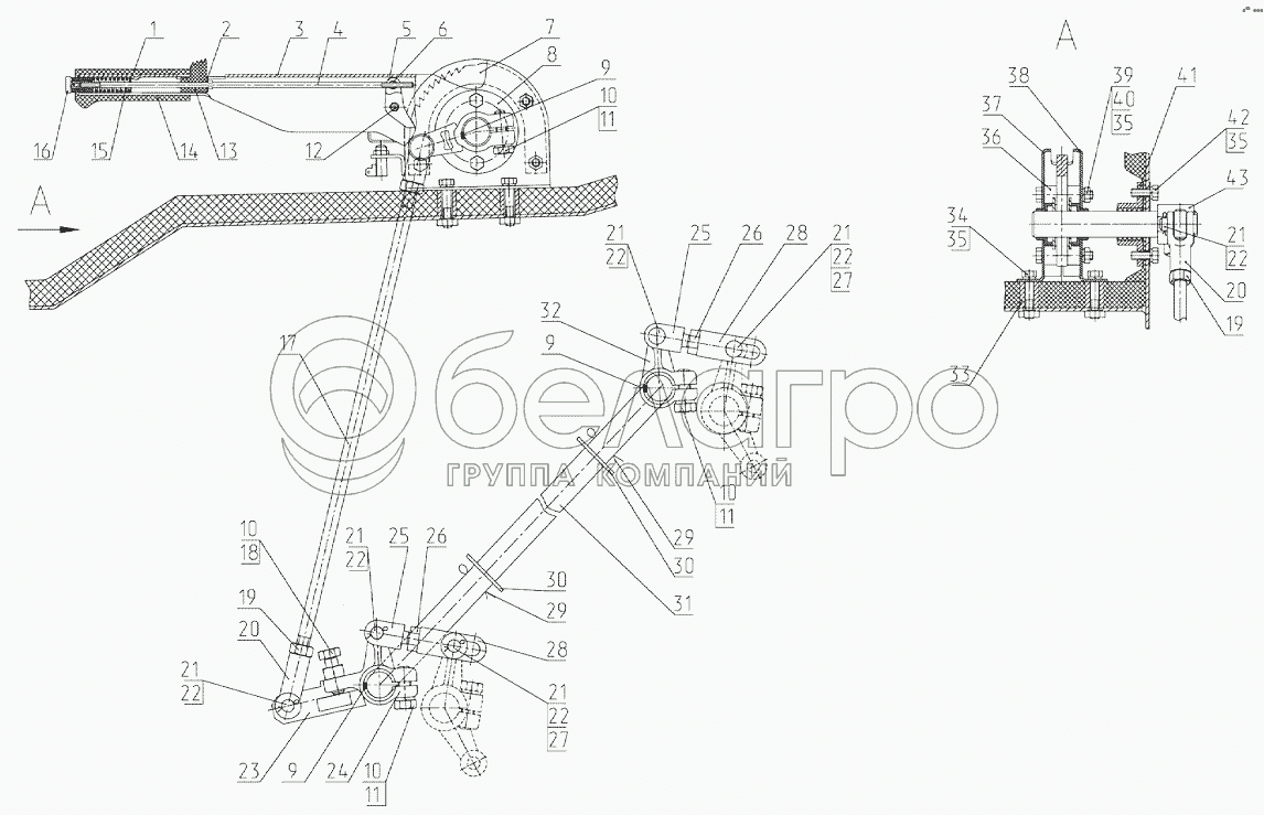 Каталог запасных частей к технике: МТЗ 2122.3/2122.4. Управление стояночным тормозом