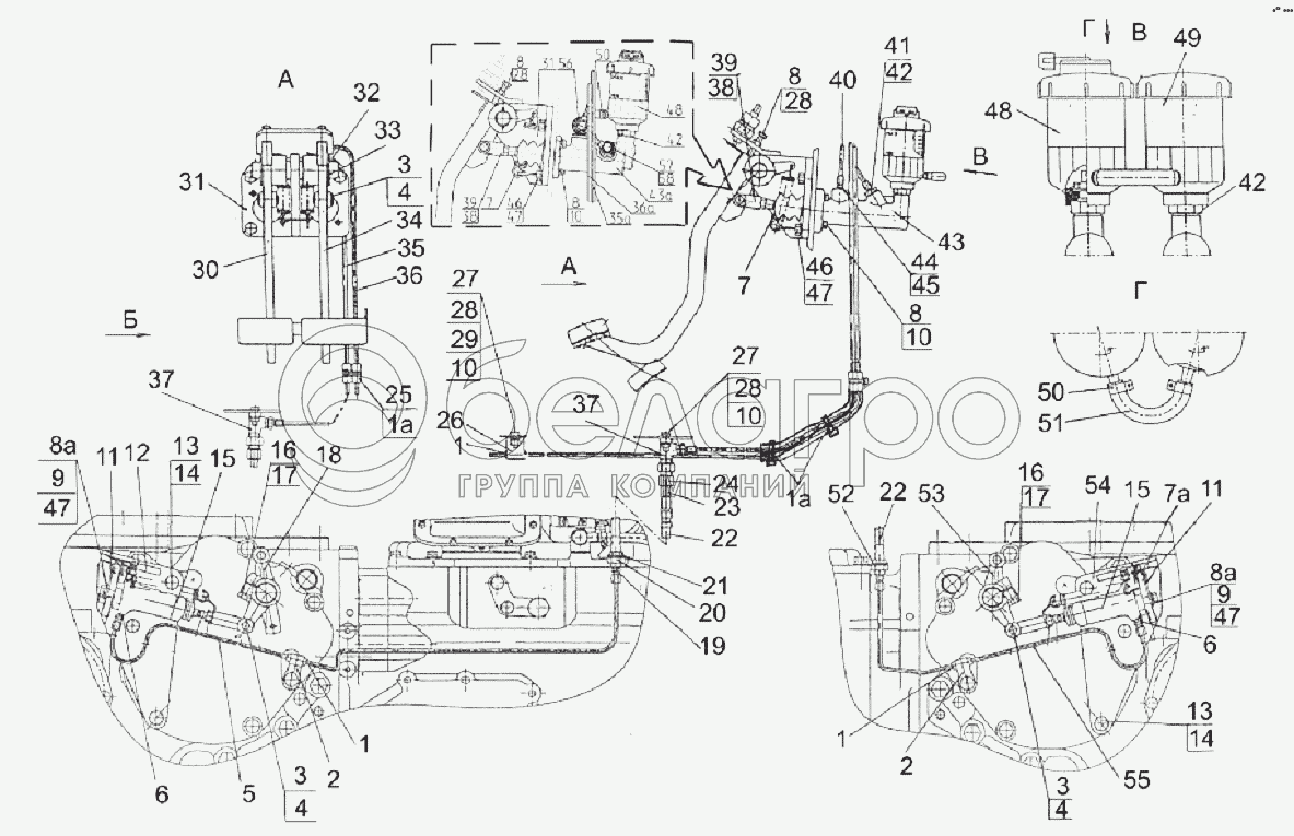 Каталог запасных частей к технике: МТЗ 2122.3/2122.4. Управление тормозами