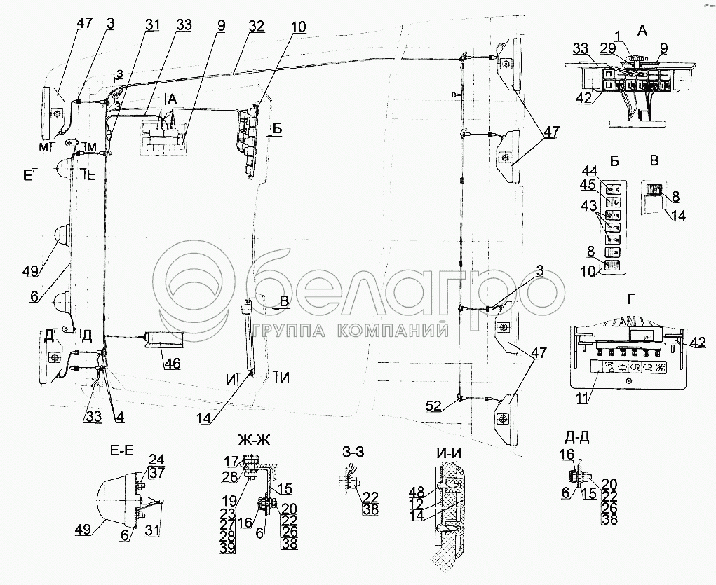 Каталог запасных частей к технике: МТЗ 2122.3/2122.4. Установка фар рабочих Беларус-2122.3