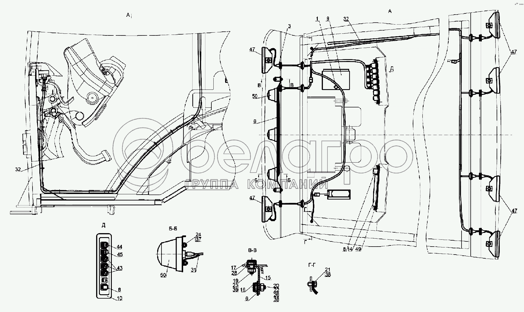 Каталог запасных частей к технике: МТЗ 2122.3/2122.4. Установка фар рабочих Беларус-2122.4