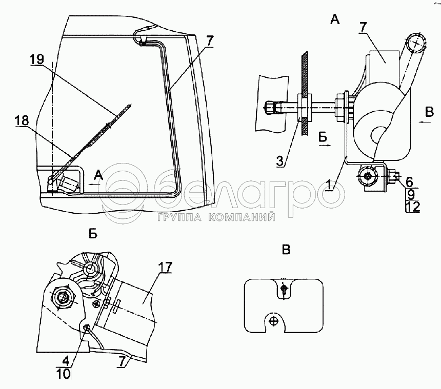 Каталог запасных частей к технике: МТЗ 2122.3/2122.4. Установка стеклоочистителя заднего