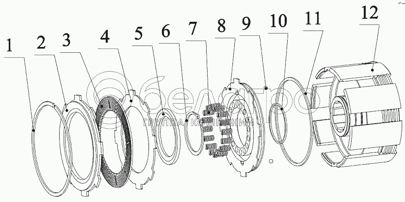Каталог запасных частей к технике: МТЗ 2122.3/2122.4. Узел передач. Фрикцион